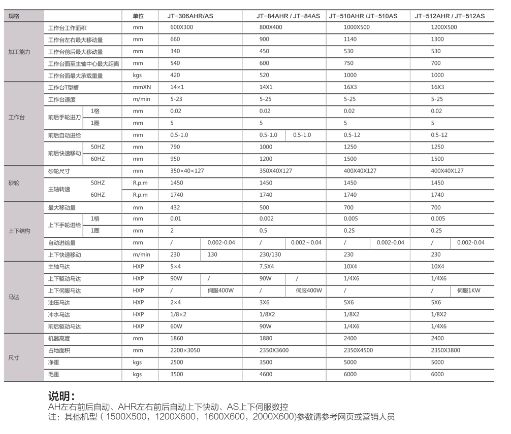AHD:前后、左右及上下三轴均为自动操作,上下进给可先预设进给量和进给次数,工作完毕后机床自动停止