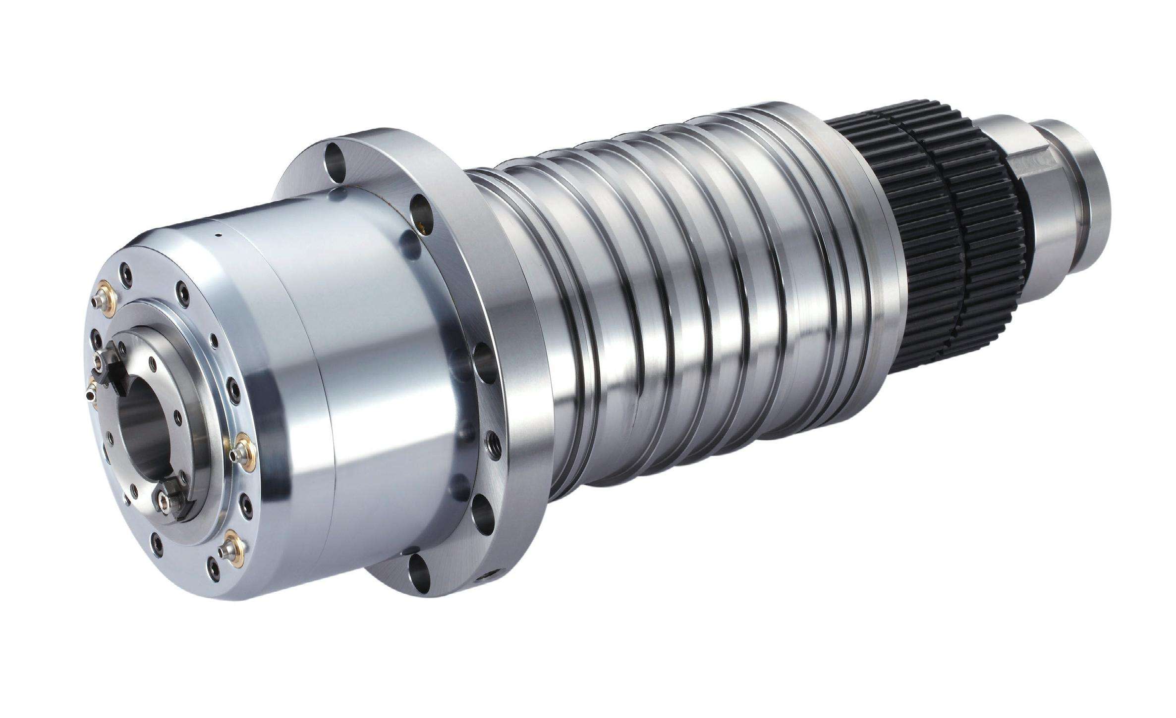 4)箱型主轴头结构,内部筋骨强化,并配置台湾著名品牌罗翌主轴,采用P4级超精密斜角滚珠轴承及大跨距支撑设计,使主轴能够承受强大的径向和轴向推力,消除重负荷切削下产生的震动。