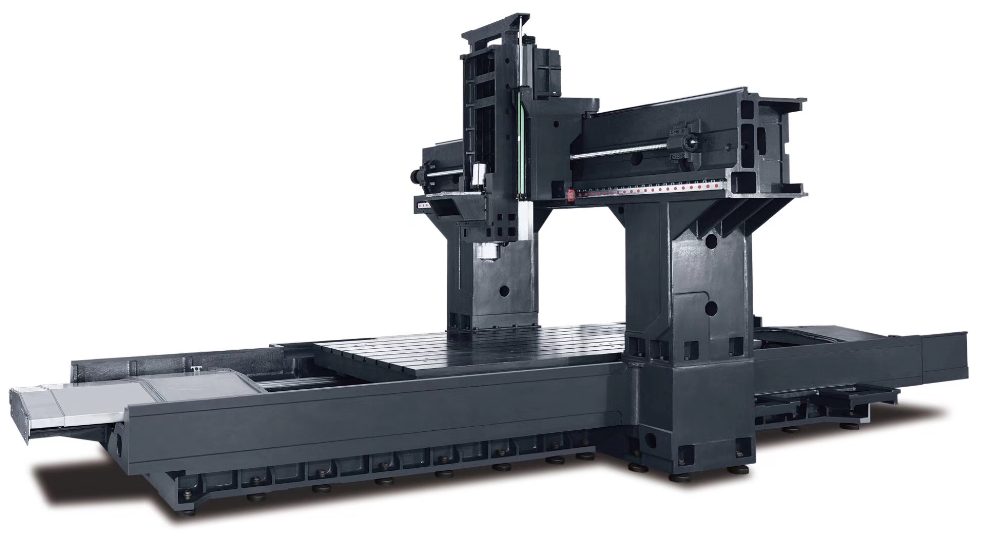2)XY轴采用高精度、高速、可承受高负荷的滚珠线性滑轨及滚珠丝杠,确保动态精度及耐久的使用寿命。Z轴采用淬硬滑动轨道设计,与聚四氟乙烯导轨贴面配合,具有高刚性、高耐磨性等特点,具有极高的加工稳定性。Z轴附油压平衡缸配重,减轻Z轴马达的负荷;